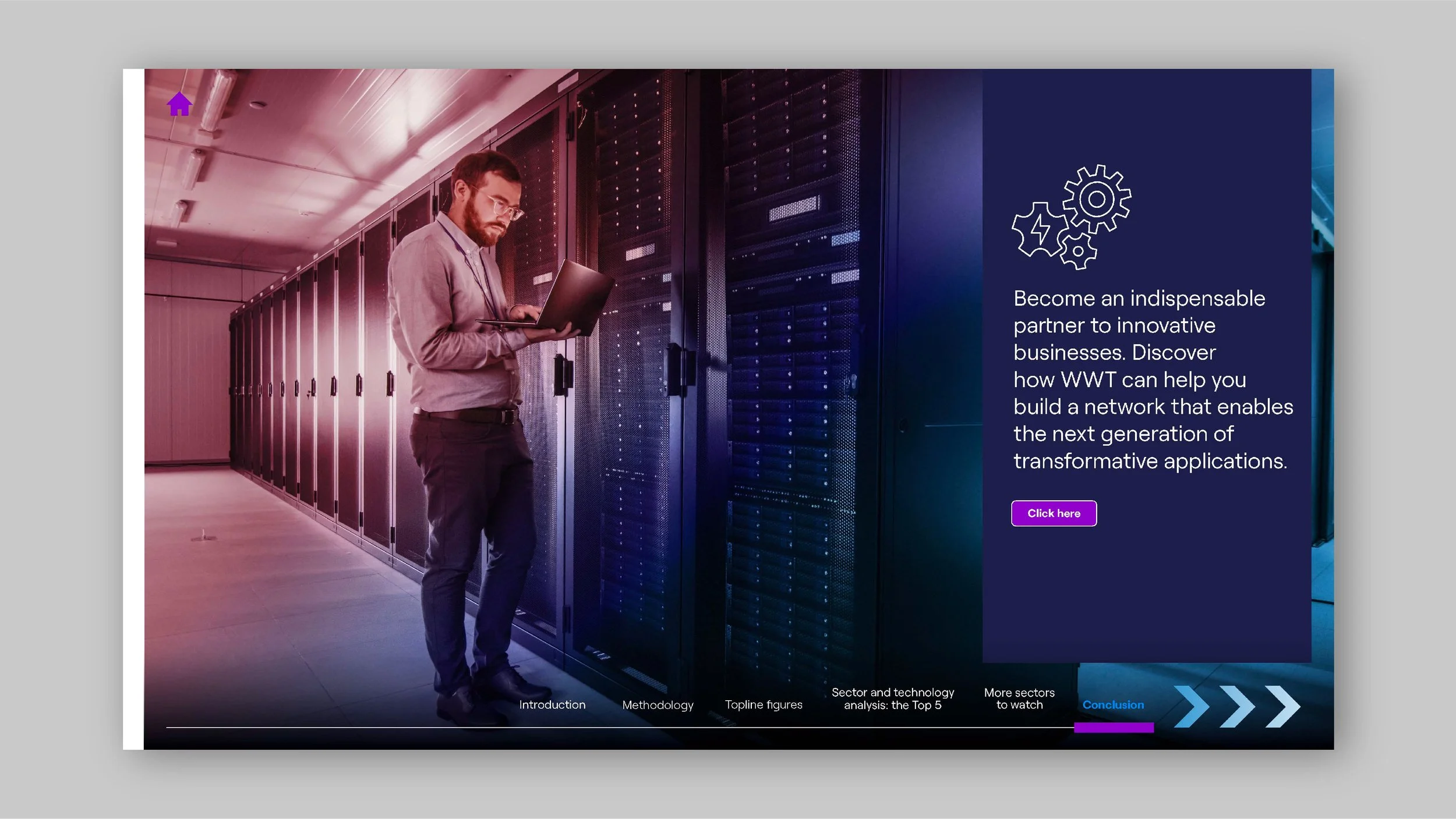Nelson Bostock hosted a brainstorm involving the client. From this brainstorm we presented the client with two potential research routes out of which ‘Follow the Money’ was chosen. We also created multiple assets to support the report and helped WWT build out its customer journey such as, landing pages, social assets, social copy, blogs, press release.