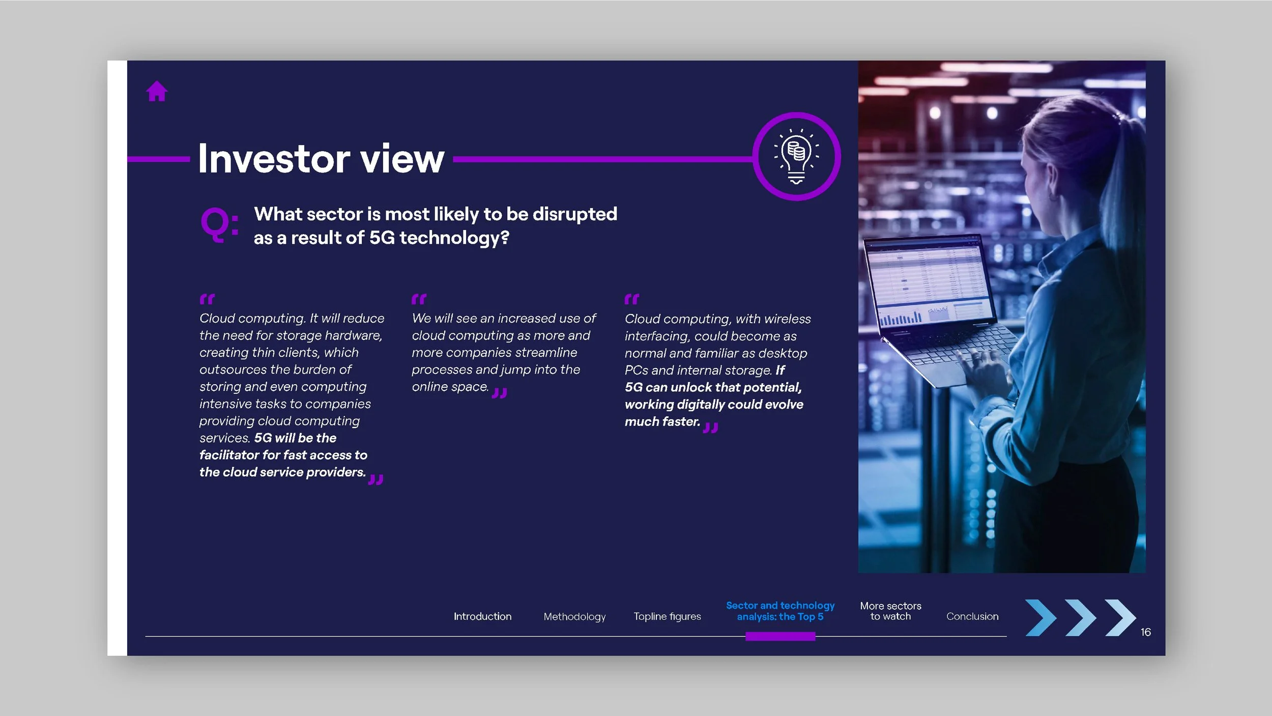 We created a stats-focused 7,000 interactive PDF report highlighting the benefits of 5G. The goal was to set WWT as a thought leader within the 5G space. To promote the report we adopted a multi-channel approach: